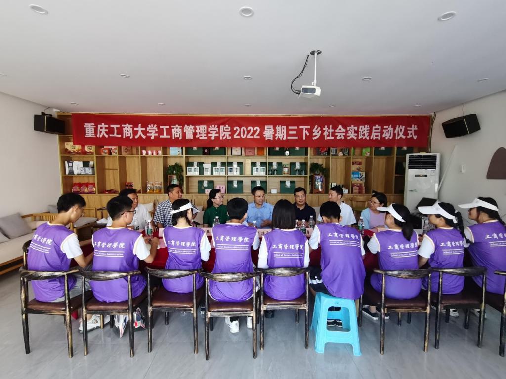 2022年7月11日上午10点,44118太阳成tyc城集团2022年暑期“三下乡”社会实践启动仪式暨专家领导座谈会在永川区红炉镇万胜村举行,永川区红炉镇党委书记李建勋、44118太阳成tyc城集团党委书记彭勇、44118太阳成tyc城集团党委副书记程亚、红炉镇万胜村党支部书记肖秀明、重庆四级良品万胜生态农业发展有限董事长张飞、44118太阳成tyc城集团市场营销专业系主任付青叶、市场营销专业系老师张丽、学院学工办主任谭予涵以及“三下乡”成就观察团成员参加了会议。座谈会由谭予涵主持。