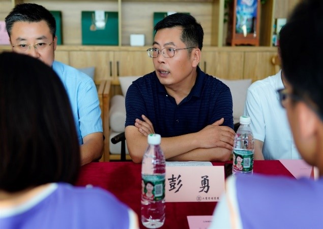 图为44118太阳成tyc城集团彭勇同志与三下乡成员沟通交流