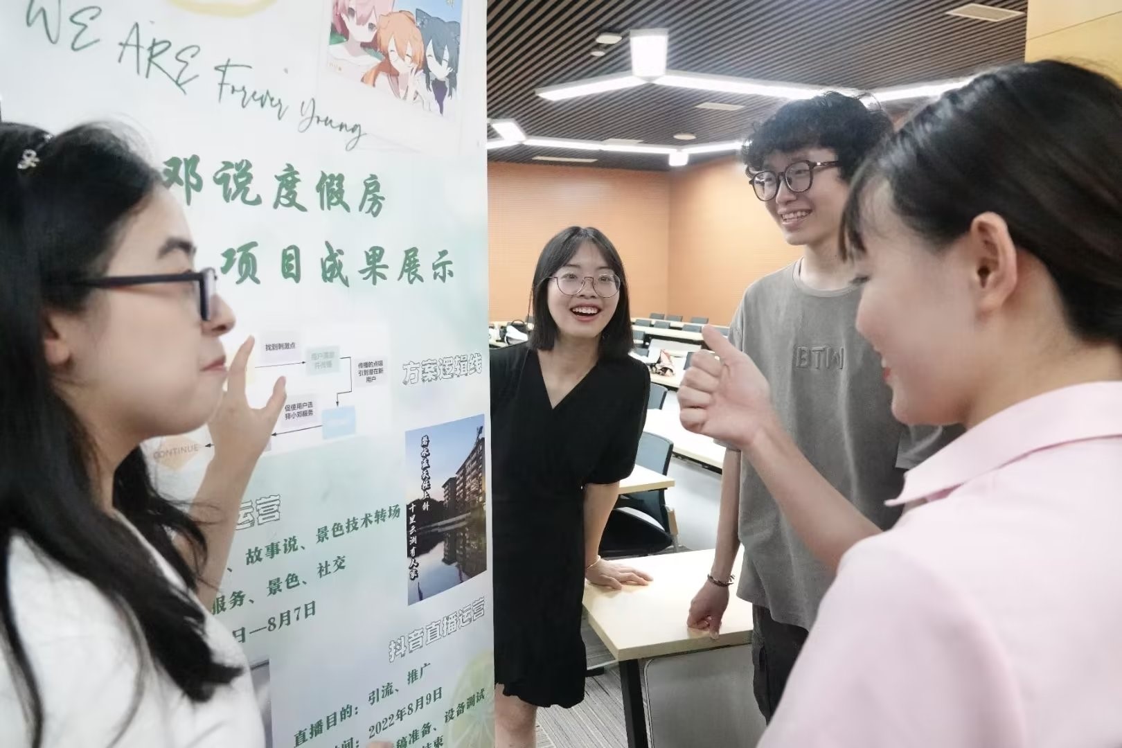 图为训练营成员通过易拉宝海报展示项目解决方案及成果