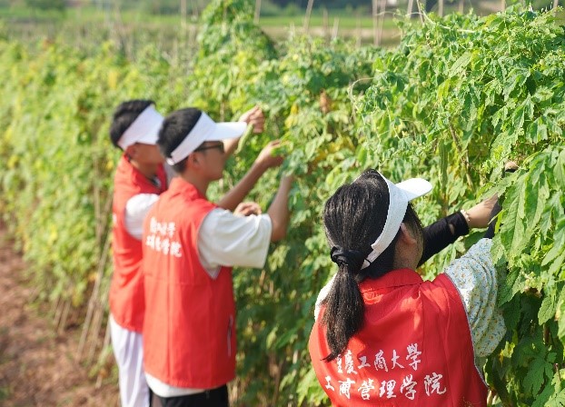 图为三下乡实践团于四季良品万胜生态园体验农活