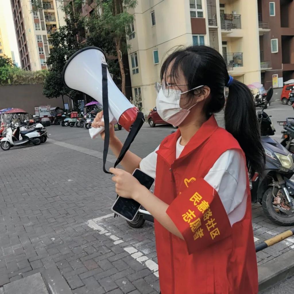 高伟聆说:“第一次参加防疫的志愿者,看到重庆市所有主城区的居民都需要做核酸的时候,城市的人们好像都紧张起来了,看到需要志愿者的消息立马报了名,这是一次我能为我的城市做一点贡献的时候。第一次身临其境,即使在高温的重庆,人民也体谅着医护人员。大家早早排队,井然有序,小朋友、青年、中年人、老年人,大家都会用自己的方式去支持政府的决定。汗水打湿医护工作者的衣服,社区工作人员在群里号召大家下楼做核酸,志愿者们维护秩序,那一天,我们共同努力顺利的完成了这一片区的核酸检测,回家的路上想着这一天的工作,充实而有意义,山火已经熄灭了,希望疫情也能停息。”