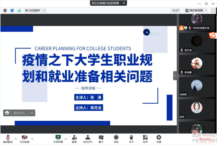 2022年11月25日,由工商管理系、国际商务系主办,未来经理人协会承办的以“疫情之下大学生职业规划和就业准备相关工作问题”为主题的讲座如期举办。讲座邀请到了张湧老师主讲,工商管理系郑月龙教授进行主持,以及学校相关老师和工商管理系、国际商务系等学生在线参与。