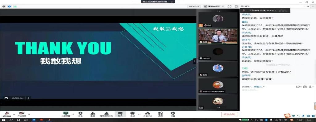 最后,张湧老师根据同学们在疫情下所关心的职业规划和就业的问题进行了充分的互动。比如针对“就业时第一学历重要吗”、“对转专业有什么看法”、“除CPA学习外,工作后还有啥看不见的东西需要学习”等问题,张湧老师进行耐心且细致解答。