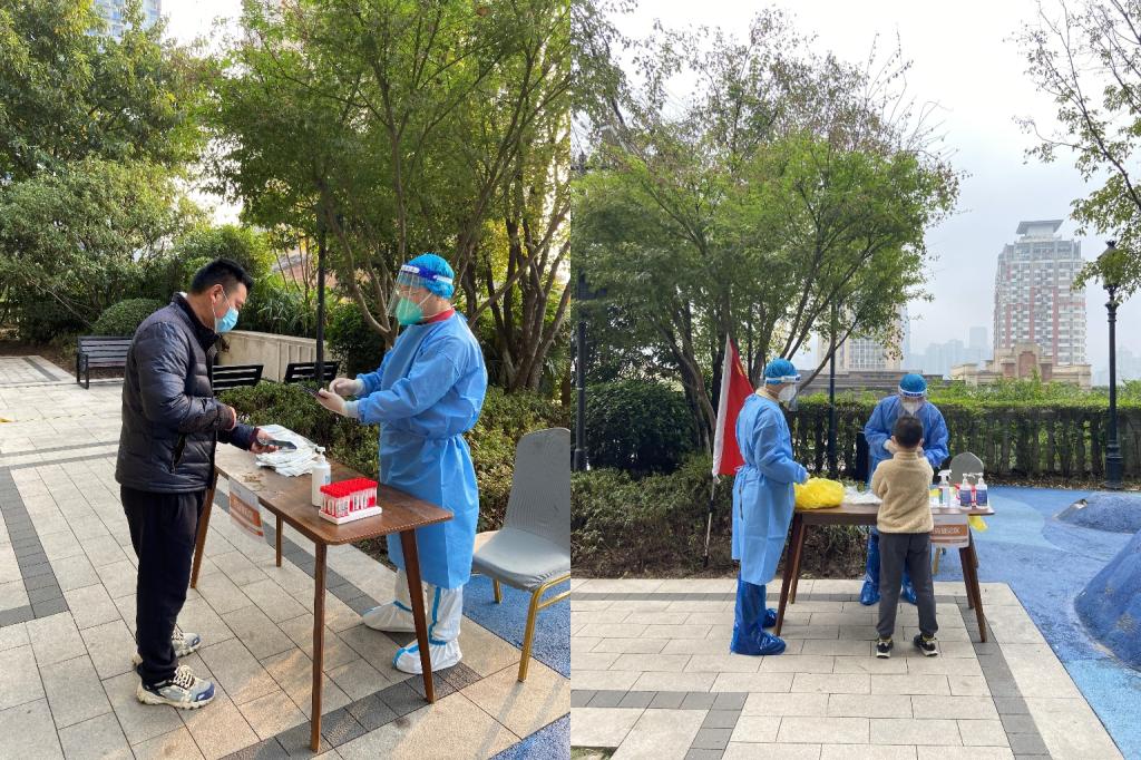 教工一支部书记郑月龙同志积极响应回龙湾社区号召,身先士卒,跟随医护人员,对封控楼栋的混阳人群挨家挨户上门进行核酸信息采集。