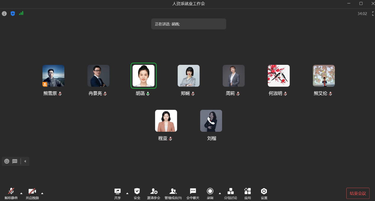 会上辅导员郑娴老师介绍了2023届学生就业情况,胡菡老师分享了2022届毕业生就业推进工作心得。人资专业老师熊艾伦、冉景亮、何淑明和周莉老师结合自己指导学生就业的体会和经验进行了分享。