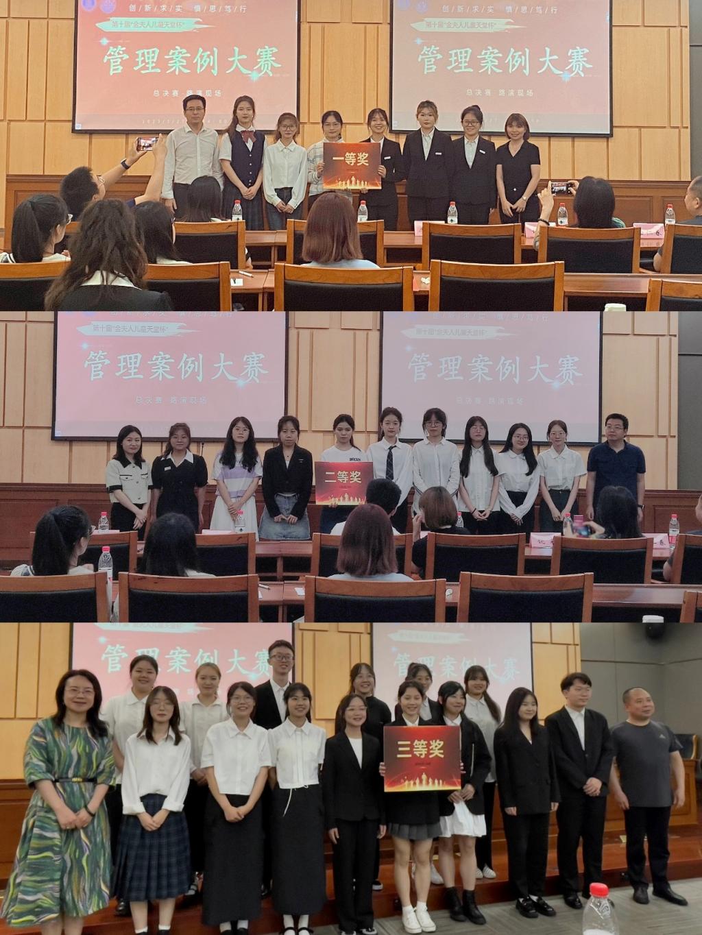 2023年5月27日下午,重庆工商大学第十届“金夫人儿童天堂杯”管理案例大赛决赛于新图书馆会议中心会议室顺利举行。本次比赛由金夫人儿童天堂有限公司赞助,44118太阳成tyc城集团未来经理人协会承办。金夫人儿童天堂有限公司人力资源部经理廖小玉女士、人力资源部主管张庆女士与44118太阳成tyc城集团郑月龙老师、罗吉老师、饶莉老师和白仁春老师出席了本次决赛。