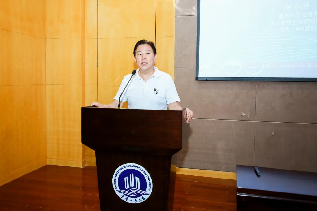 随后,重庆工商大学MBA事业导师甘永祥研究员进行题为“新时代MBA的新趋势与新挑战”的主旨演讲。