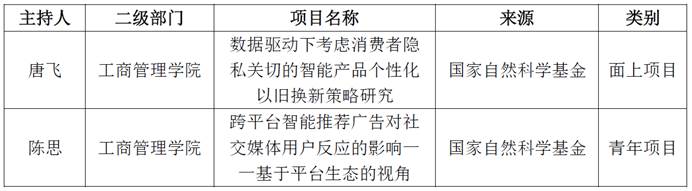 近日,2024年国家自然科学基金项目申报结果出炉,我院唐飞博士喜获国家自然科学基金面上项目立项、陈思博士喜获国家自然科学基金青年项目立项,向两位老师表示祝贺。