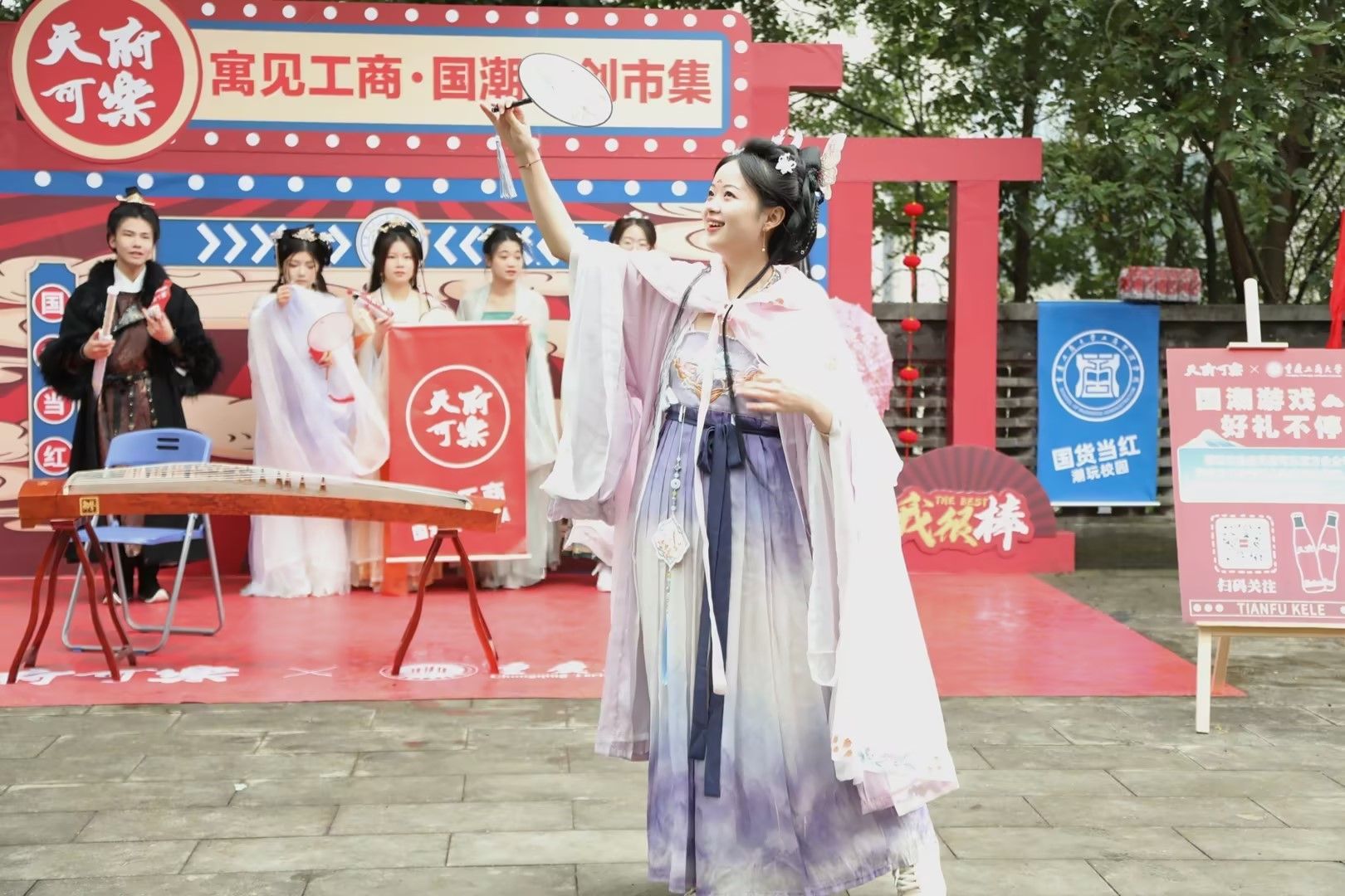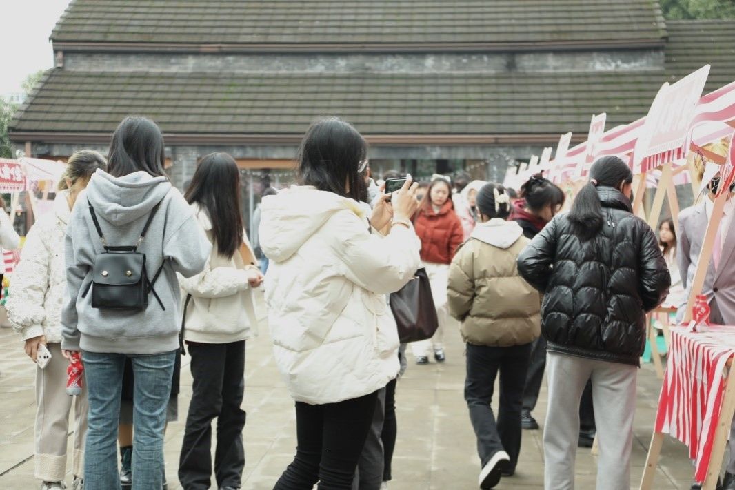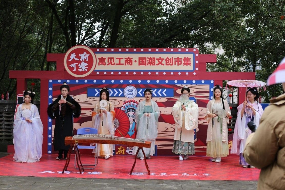 此外,集市现场还设置了投壶及击铜钱游戏、古筝表演、汉服走秀、古典舞蹈等活动形式,让同学们在丰富多彩的活动体验中感受到中华文化的深厚底蕴和大国风姿的独特韵味。国风国潮创意集市活动提升了工商学子的文化品位和艺术修养,展现了青年大学生的文化创新和创造活力,助力形成积极健康的学生社区文化。