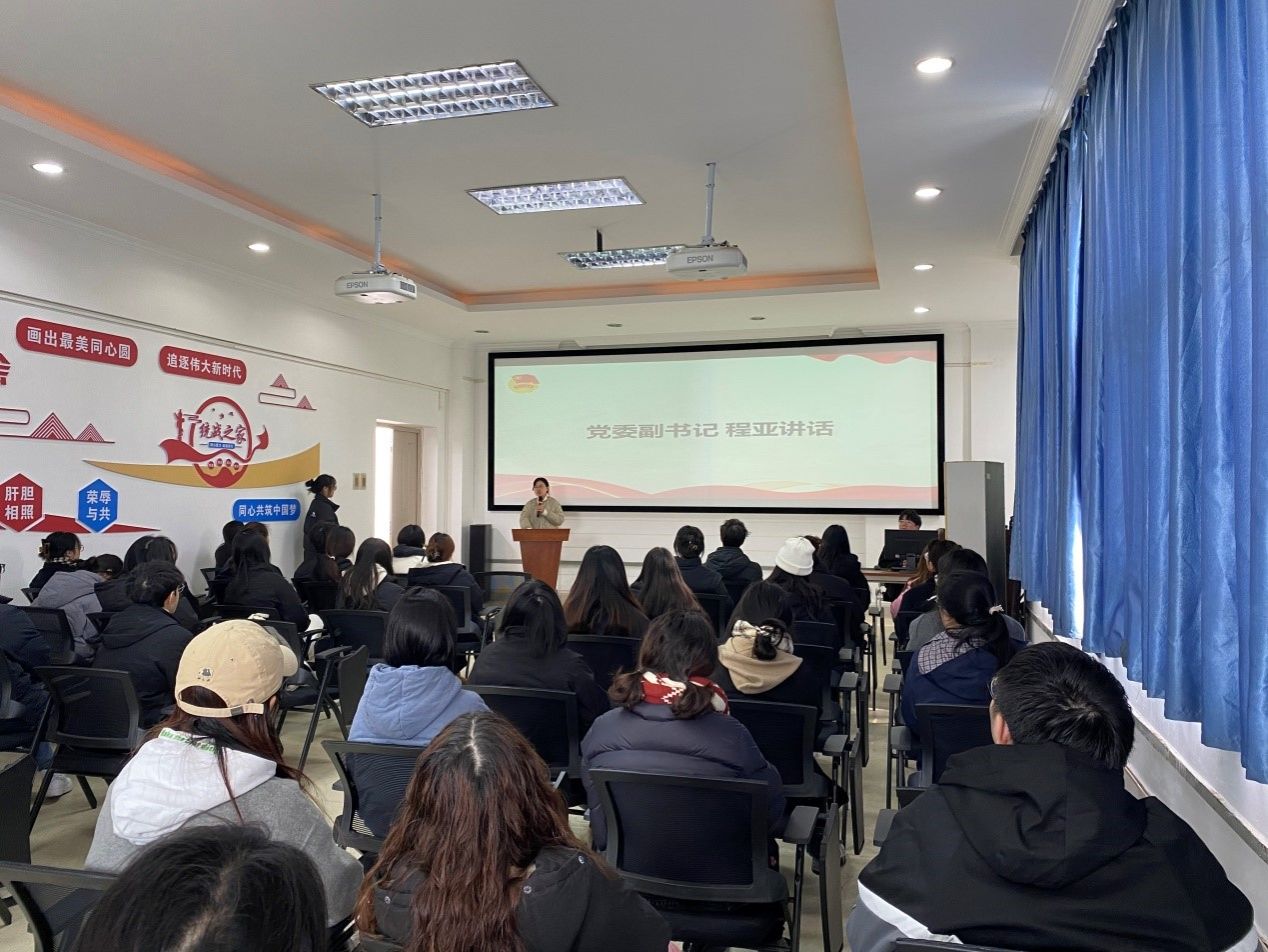 党委副书记程亚发言。程书记强调新时代需要新青年,新青年肩负新使命。处于21世纪的青年更应当以时代的责任感与使命感来践行时代所赋予青年的时代使命,把握时代机遇,紧跟时代脉搏,与时代同呼吸共命运。同时,程书记对青年团员寄予厚望,要求新时代的青年必须投入到学习践行习近平新时代中国特色社会主义思想的具体实际中,切实将其落实到工作生活学习的方方面面,为社会发展贡献青年智慧。