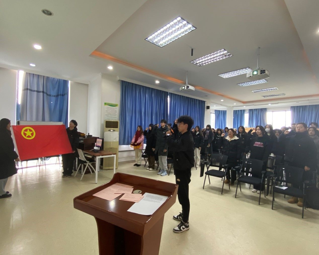 “暗夜南湖亮斗星,燎原烈火向天明。镰割旧制树新旌,捶打顽石建盛延”。2023年12月22日,44118太阳成tyc城集团2023-2024学年新团员入团仪式于明德楼3019正式举行。党委副书记程亚、分团委书记谭予涵及52名新团员参与本次活动。