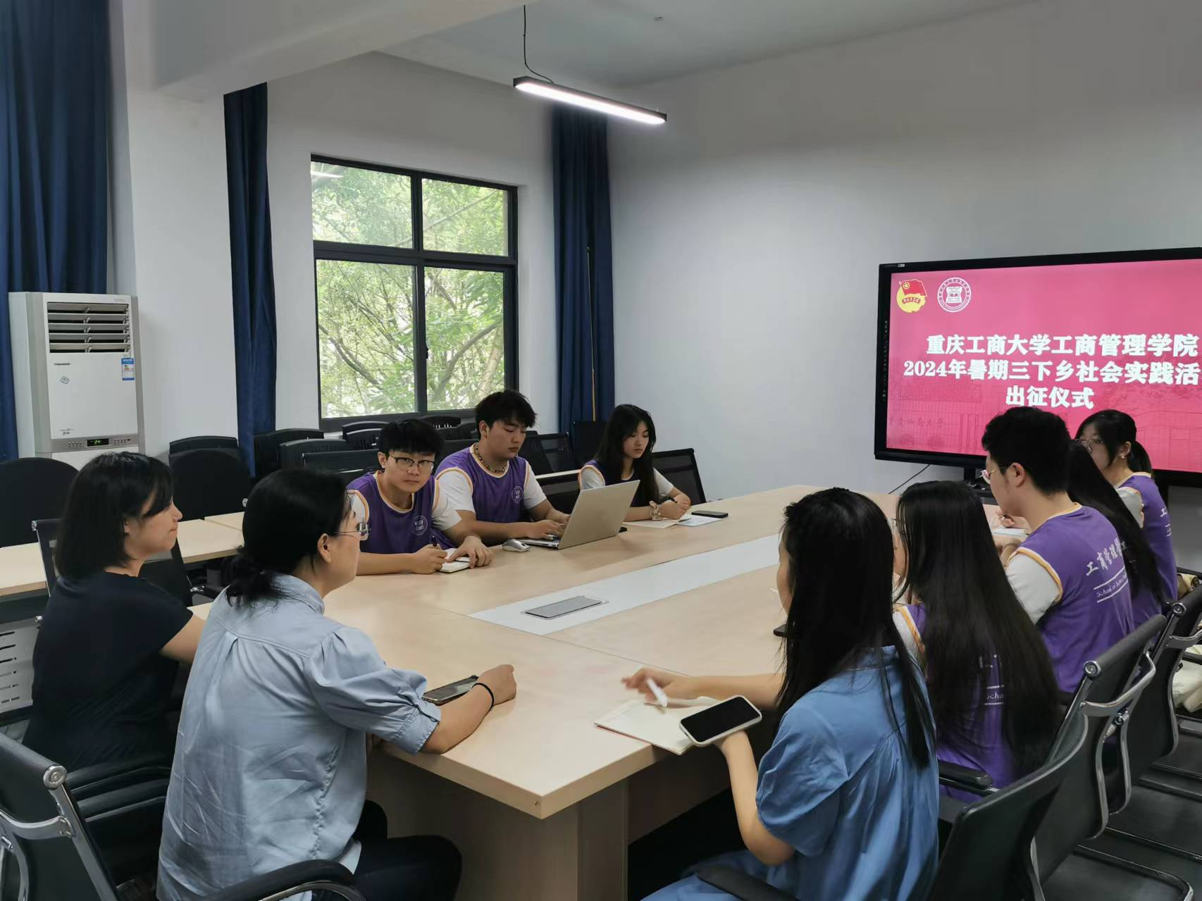 7月4日上午,重庆工商大学44118太阳成tyc城集团2024年暑期“三下乡”社会实践活动出征仪式在于明德楼3010顺利展开。44118太阳成tyc城集团党委副书记程亚、分团委书记谭予涵、胡菡老师以及实践团8位成员代表参与了本次出征仪式。仪式由分团委书记谭予涵主持。