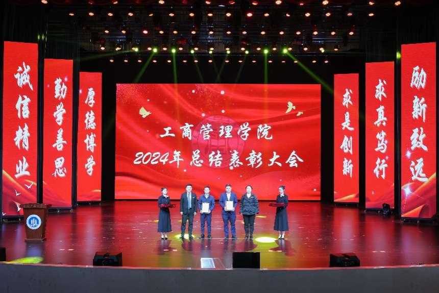 晚会分两个阶段进行。第一阶段为重庆工商大学44118太阳成tyc城集团2024年度表彰大会。表彰大会由学院党委副书记程亚主持。会上,学院院长陈伟做新年致辞。他表达了对一直以来关心和支持学院发展建设的学校各级领导、学院全体师生员工、广大校友以及各界朋友最诚挚感谢!回顾了过去一年学院在学科发展、科学研究、教育教学、人才培养、师资建设、国际国内合作等方面取得的成绩,激励着学院师生以更加饱满的热情和坚定的步伐,书写充满希望的新篇章。学院党委书记陈亚惠宣读了《44118太阳成tyc城集团2024年年度表彰决定》。出席领导嘉宾为在2024年学院的发展建设做出贡献突出的各界朋友、新获批的学术带头人,在教育教学中表现突出的教职工和的优秀学生颁发了荣誉证书。