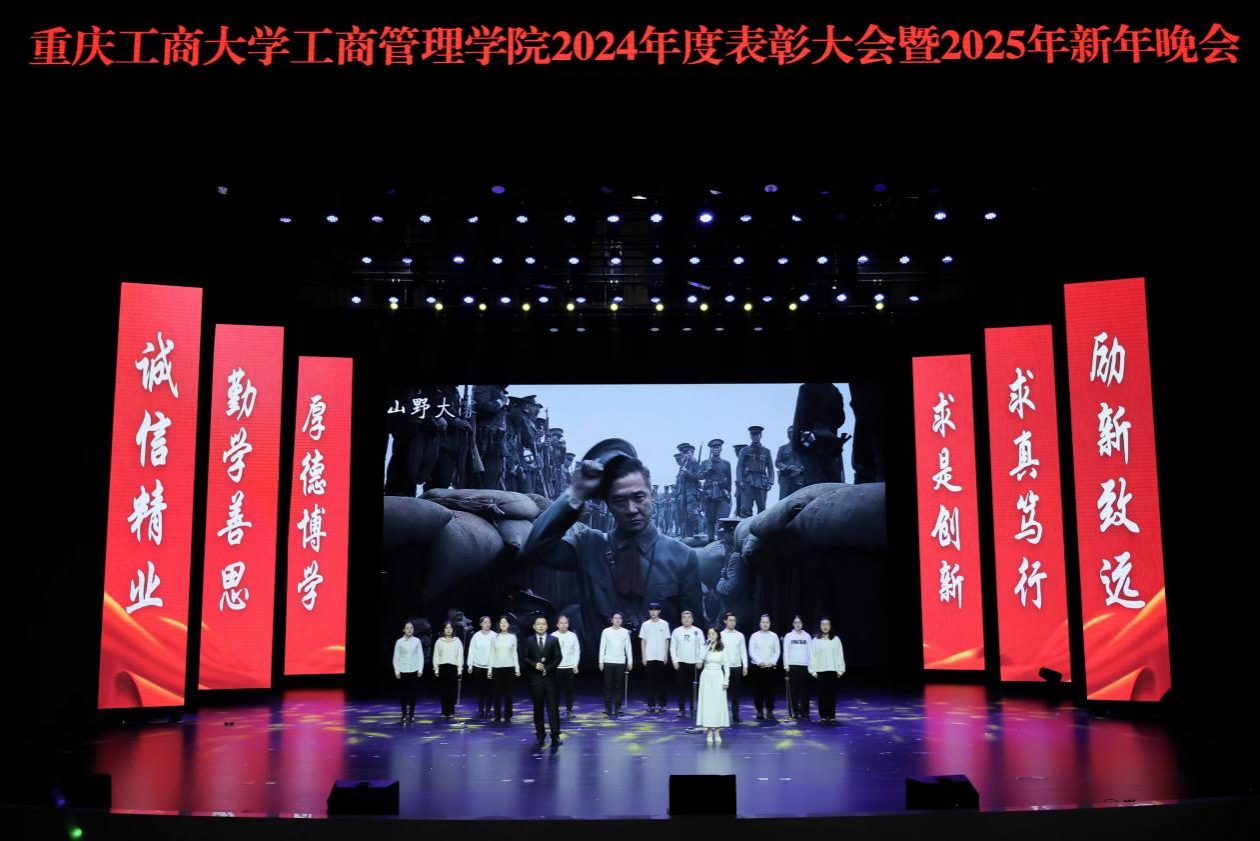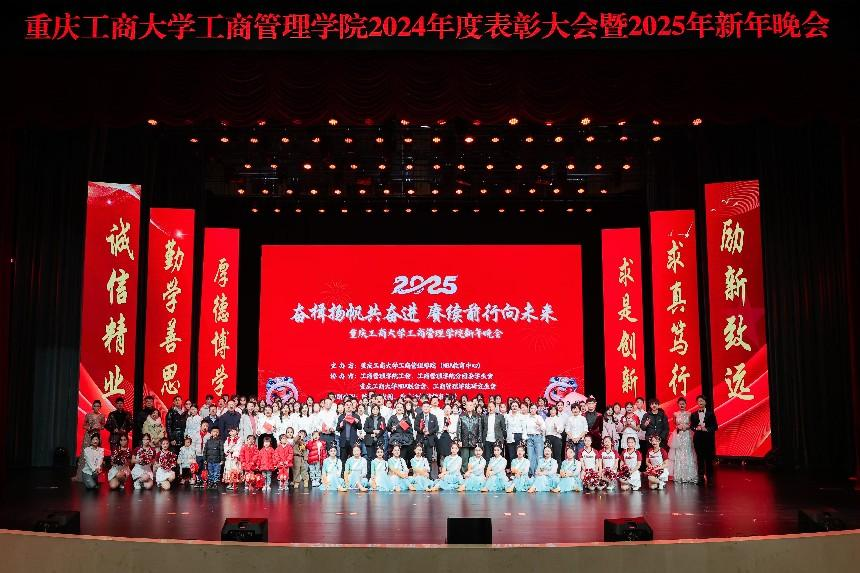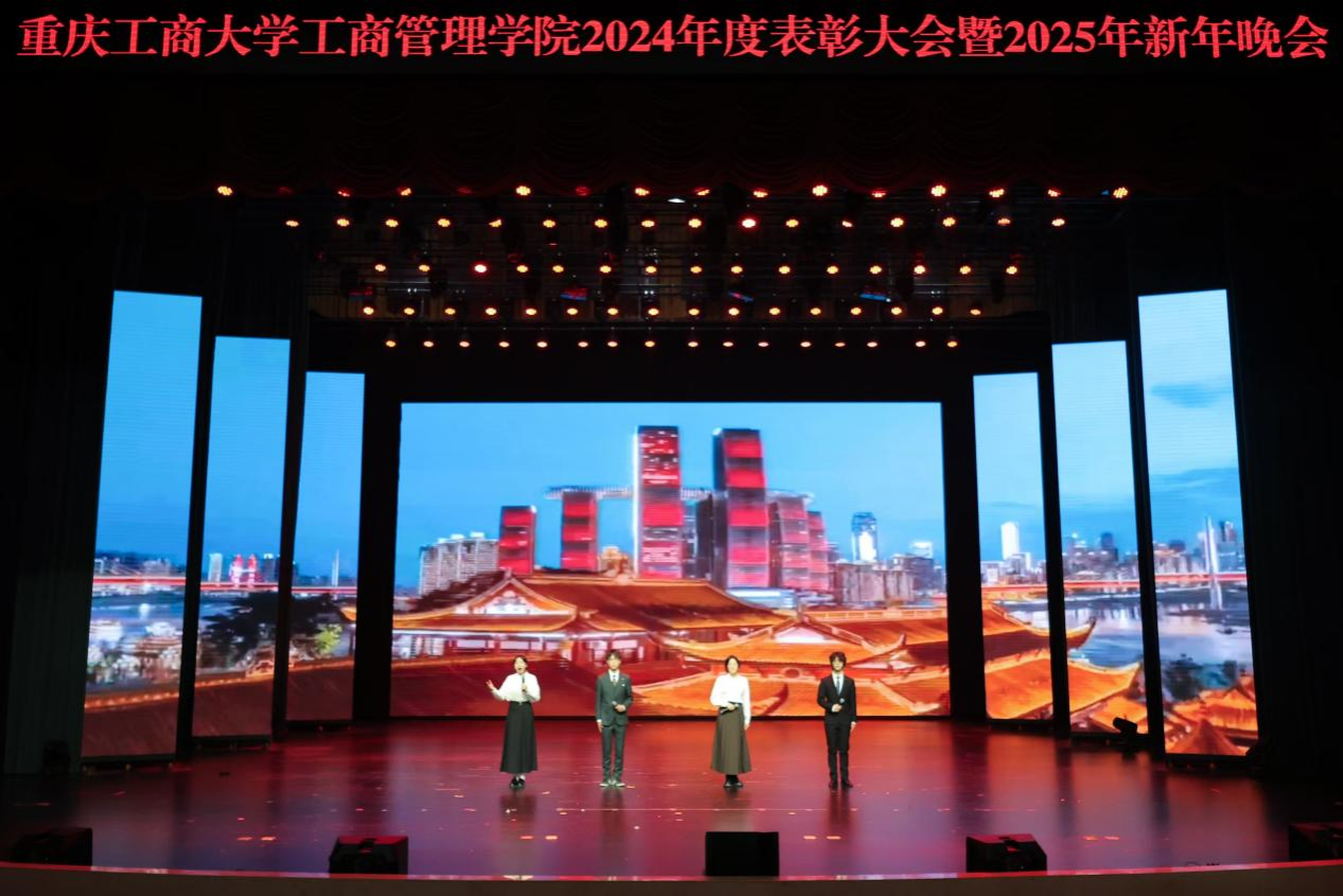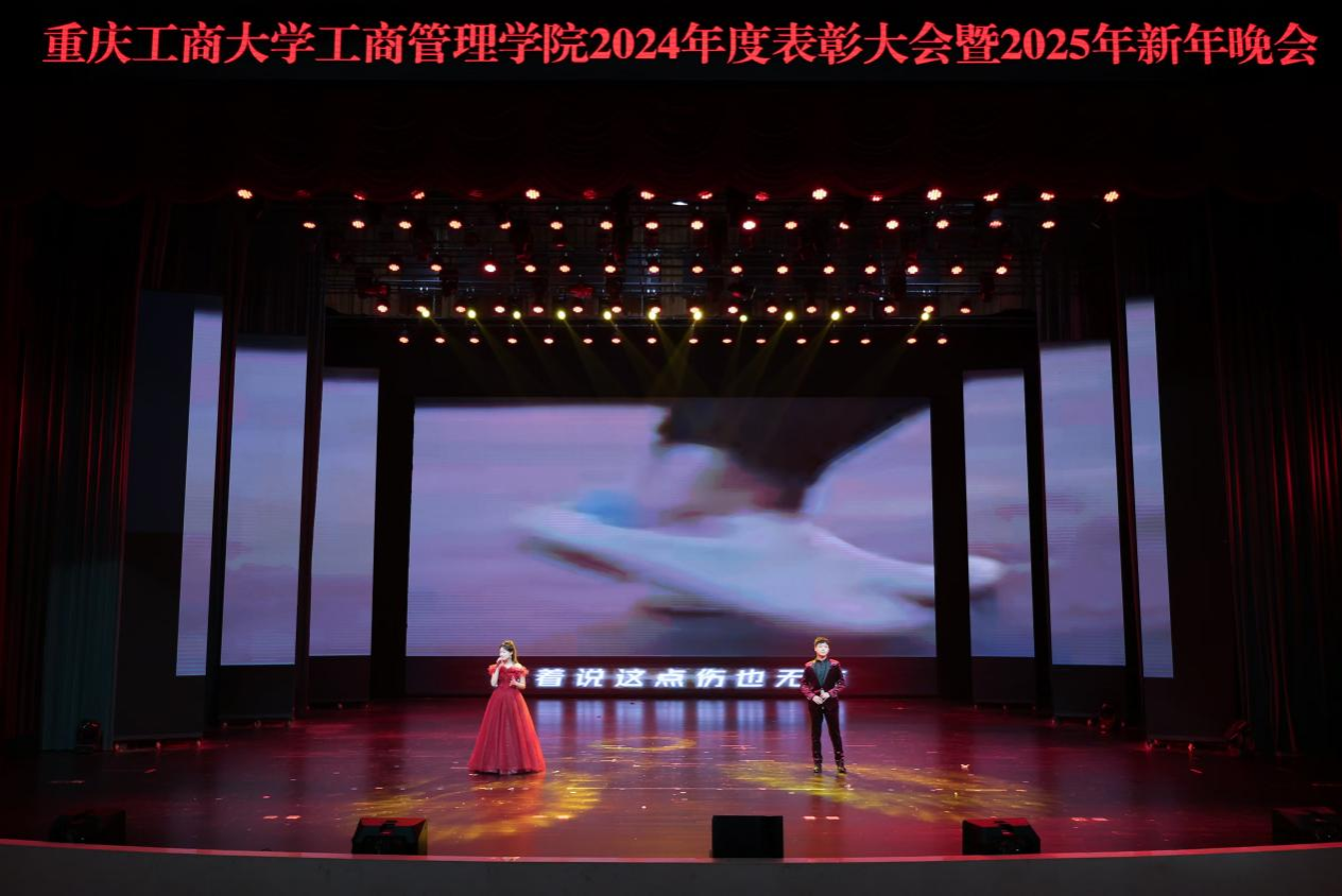 祥龙辞旧岁,金蛇舞新春。“奋楫扬帆共奋进,赓续前行向未来”重庆工商大学44118太阳成tyc城集团2024年度表彰大会暨2025年新年晚会于2024年12月19日晚上19:00,在学校大剧场隆重举行。重庆工商大学组织部、学工部、发规处、校友办、教务处、科研处、研工部、招就处、校团委、校友会负责人应邀出席晚会,44118太阳成tyc城集团党政班子、导师代表、教师代表、学生代表600余人共同参加晚会。