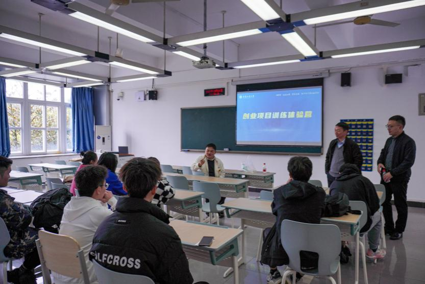 在第二阶段创业项目训练体验营中,同学们根据所选创业导师,分组前往不同教室进行专题研讨。在导师的指导下,同学们围绕各自的创业项目优化方案展开深入交流,现场互动热烈。这一环节为学生提供了与行业专家近距离沟通的机会,帮助他们在实践中提升创业能力。