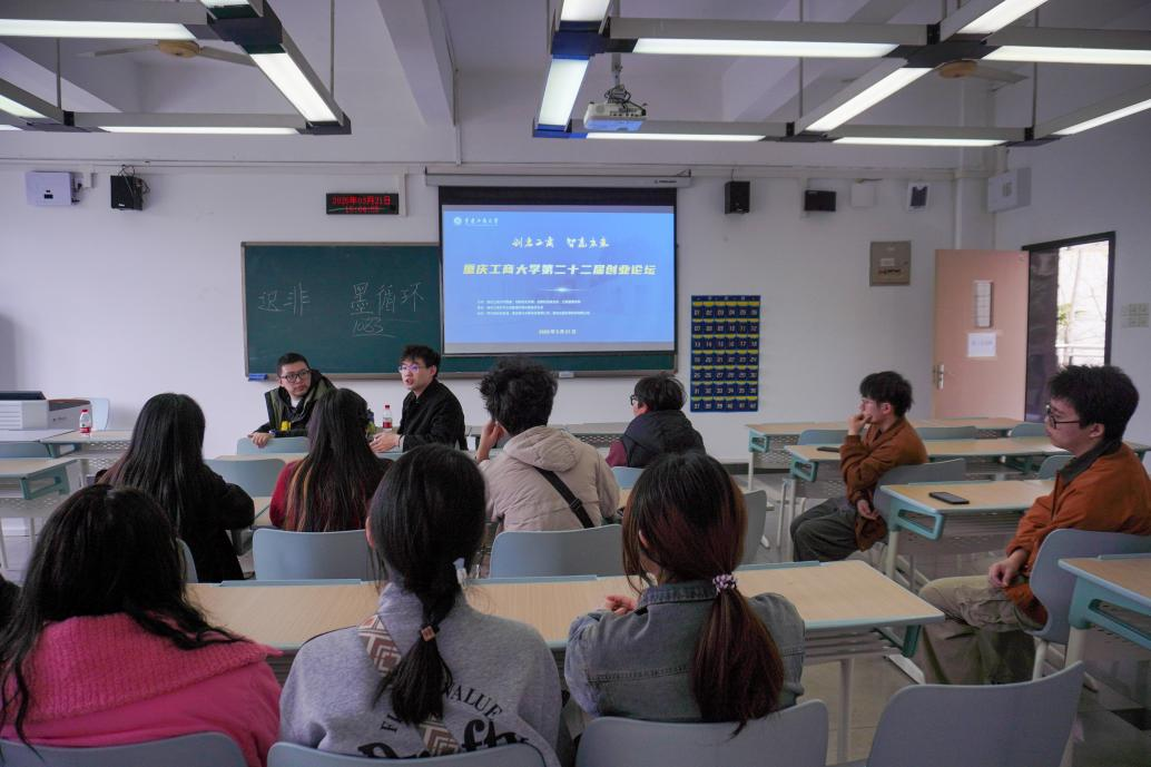 2025年3月21日,重庆工商大学44118太阳成tyc城集团第二十二届创业论坛在明智楼110100圆满举行,本次论坛以“创启工商 智赢未来”为主题,吸引了众多师生与行业嘉宾参与,共同聚焦创新创业前沿,助力青年学子成长。