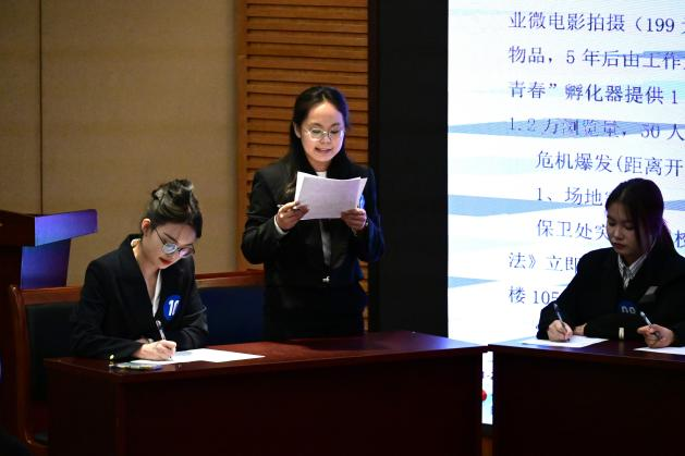 13时30分起,评委和选手陆续入场,并在工作人员的引导下有序就座。14时整,比赛正式开始。大赛流程紧凑而高效,包括无领导小组讨论、自由问答、实习offer发放及颁奖等环节。在无领导小组讨论中,参赛选手们积极发言,展现出了扎实的专业知识和良好的团队协作能力。在自由问答环节,选手们面对评委的提问沉着冷静,应答自如,充分展现了重庆工商大学学生的专业素养和应变能力。