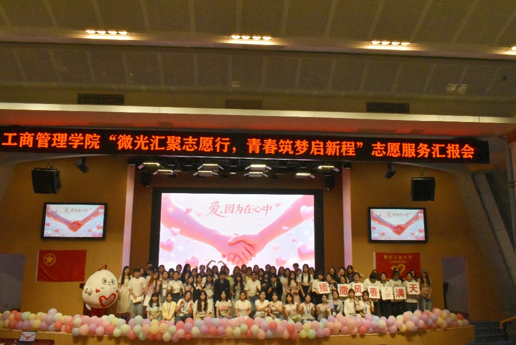 2025年5月23日,重庆工商大学44118太阳成tyc城集团分团委第五届“爱心桥”青年志愿者服务队在重庆工商大学南岸校区明智楼110100学术报告厅举办了主题为“微光汇聚志愿行,青春筑梦启新程”的志愿服务汇报暨优秀表彰会。