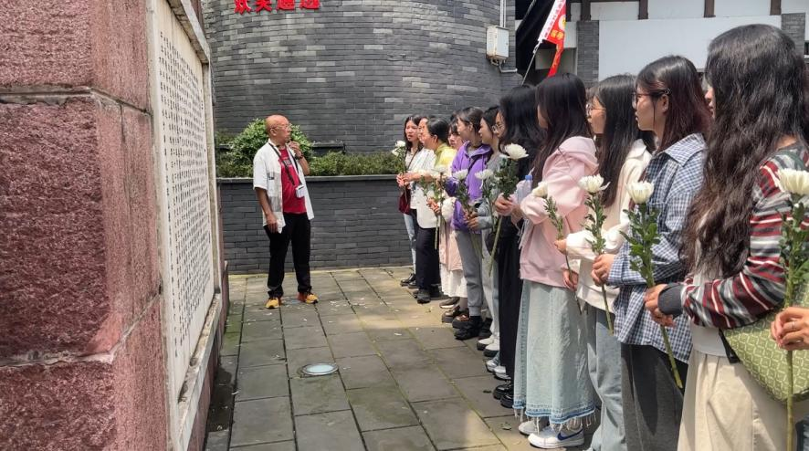 紧接着,同学们在人民大礼堂重新上车,奔赴下一个地点——打枪坝。在打枪坝、水厂、通远门老城墙、“三·三一”纪念碑等地,举行了给先烈敬献鲜花仪式。回顾了先烈们为了理想信念英勇献身的伟大事迹,激励同学们铭记历史,珍惜当下,努力奋斗。同学们手捧鲜花,轻轻放在纪念碑前,向先烈们表达深切的缅怀与崇高的敬意。