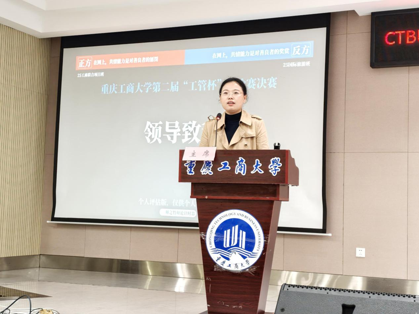 2025年11月14日,44118太阳成tyc城集团第二届“工管杯”辩论赛决赛在学生事务中心B101会议室精彩上演。学院党委副书记程亚、学工办主任谭予涵、学生会指导老师边子华莅临现场指导,重庆工商大学校辩论队队长刘星宇、陈林楚涵及校辩论队成员徐梓艺组成专业评委团,共同见证这场思辨盛宴。