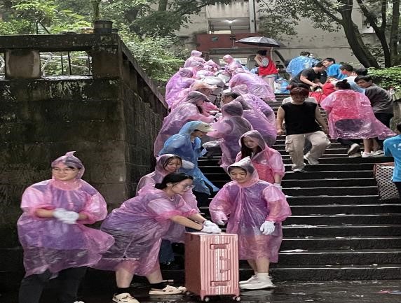 7月1日从早上8点持续到下午6点,10个小时,在高温与淅沥的雨中,44118太阳成tyc城集团圆满完成2022级629名学生宿舍搬迁工作。