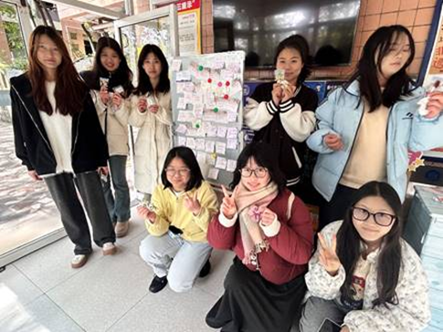 “春风有信”心灵寄语环节。女生们或是独自凭窗静思,或是三两成群热烈讨论,用细腻的笔触书写下内心深处的情感与感悟。一字一句,传递着对未来的坚定期许,以及对身边挚友的真挚鼓励,字里行间满是温暖与力量。