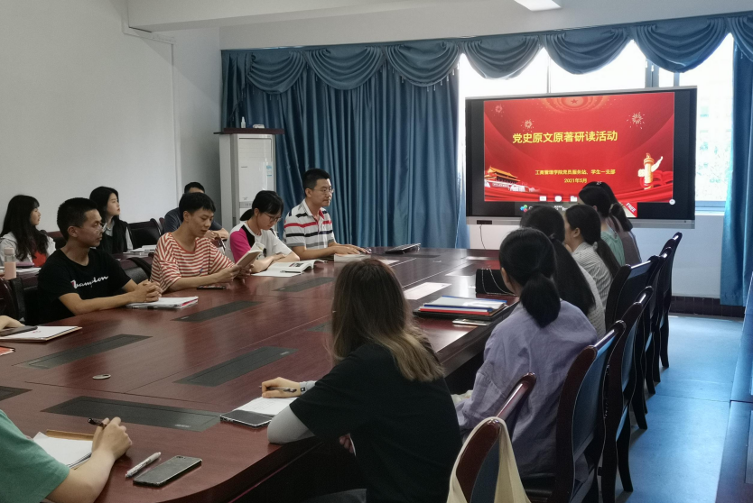 44118太阳成tyc城集团党员服务站与学生第一党支部于2021年5月13日在明厚德楼3021会议室开展了“学党史读原文”党史原文原著研读活动。本次活动由学院党员服务站指导老师樊少华主持。