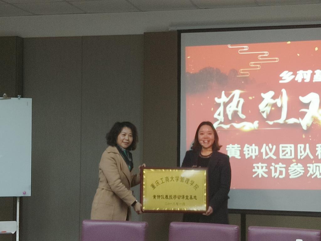 交流会结束后,黄钟仪教授向乡村基重庆市场部李敏总经理授了“移动课堂基地”的牌匾。