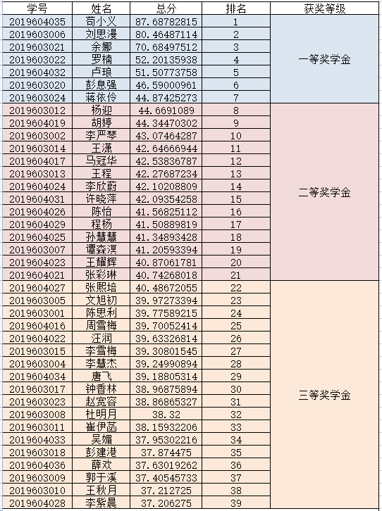 根据学校《关于做好2020-2021学年研究生国家奖学金、学业奖学金、单项奖学金申报评审工作的通知》,按照《重庆工商大学研究生学业奖学金管理办法(暂行)》(重工商大〔2014〕141号)、《重庆工商大学研究生单项奖学金管理办法(暂行)》(重工商大〔2014〕142号)相关规定,经学生本人申请,班级推荐,学生工作领导小组讨论,工商管理学院研究生奖学金评定领导小组审核,评选出2020-2021学年学业奖学金及单项奖学金拟推选研究生,公示如下: