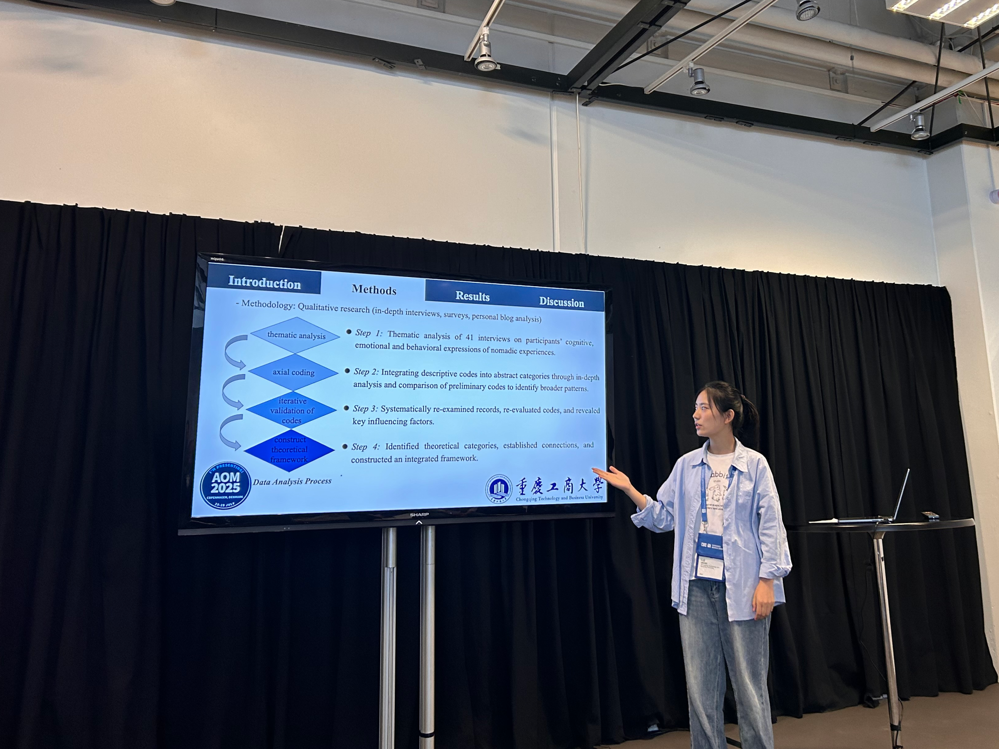 会上,我院师生成果亮眼。田喜洲教授作为第一作者、王鹭同学作为第二作者的论文《Who am I? Self-identity of Digital Nomad: Impacts and Mechanisms》经同行评审后成功入选年会交流内容,这是我校首次获AOM年会接收并进行宣讲的学术论文。729日,王鹭同学在“Identity at Work: New Directions in Self-Concept”专题分会场进行论文汇报,其研究视角与内容获与会专家点评及宝贵建议。