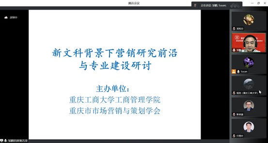 2022年11月14日晚,由44118太阳成tyc城集团、重庆市市场营销与策划学会联合主办的“重庆翠湖营销论坛”在腾讯会议成功举办。本次论坛的主题是“新文科背景下营销研究前沿与专业建设研讨”,来自全国各个高校的教师、学会会员、高校相关专业的博士、硕士研究生近100人参加。
