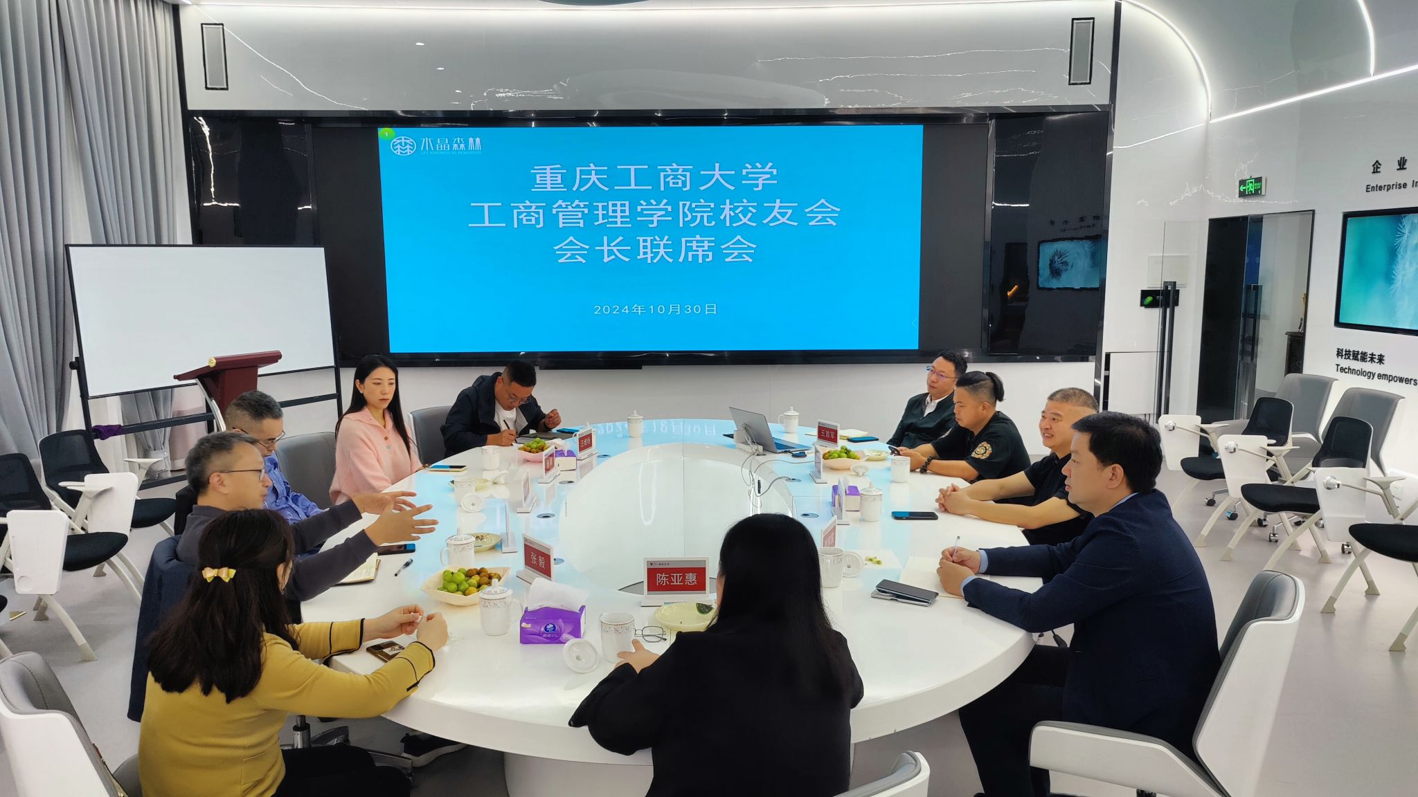 为进一步加强联系交流,充分发挥校友在推动学院高质量发展中重要作用,10月30日,44118太阳成tyc城集团校友分会会长联席会在校友企业重庆水晶森林文化传播有限公司顺利召开。44118太阳成tyc城集团校友分会会长赖家国、名誉会长张良和学院党委书记、副院长陈亚惠出席了会议,校友分会执行会长、副会长参加了会议。会议由校友分会执行会长李锦红主持。
