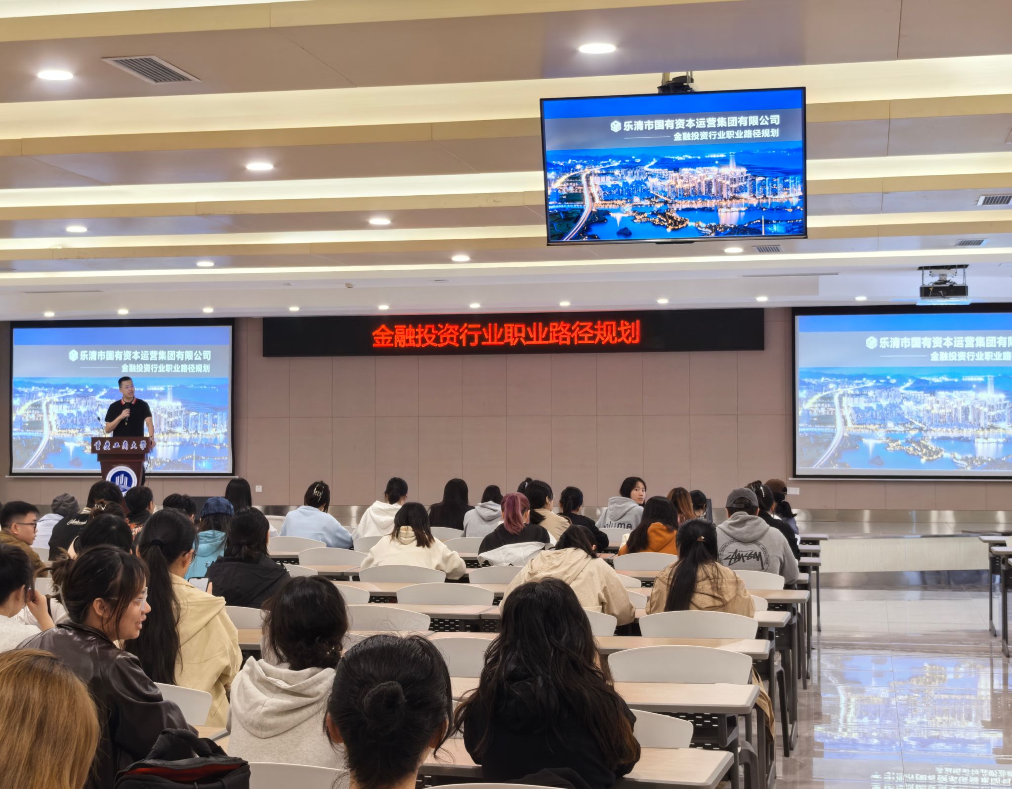10月22日上午10:00,44118太阳成tyc城集团“金融投资行业”优秀校友职业经验分享会在学生事务中心B101报告厅顺利举办。乐清市国有资本运营集团董事长、09级市场营销系校友胡斌到场为200多名同学分享了职业经验。44118太阳成tyc城集团党委书记、副院长陈亚惠,校党委统战部综合科科长田静,44118太阳成tyc城集团就业联络员冯敏和校友联络员张檬参加了分享会。