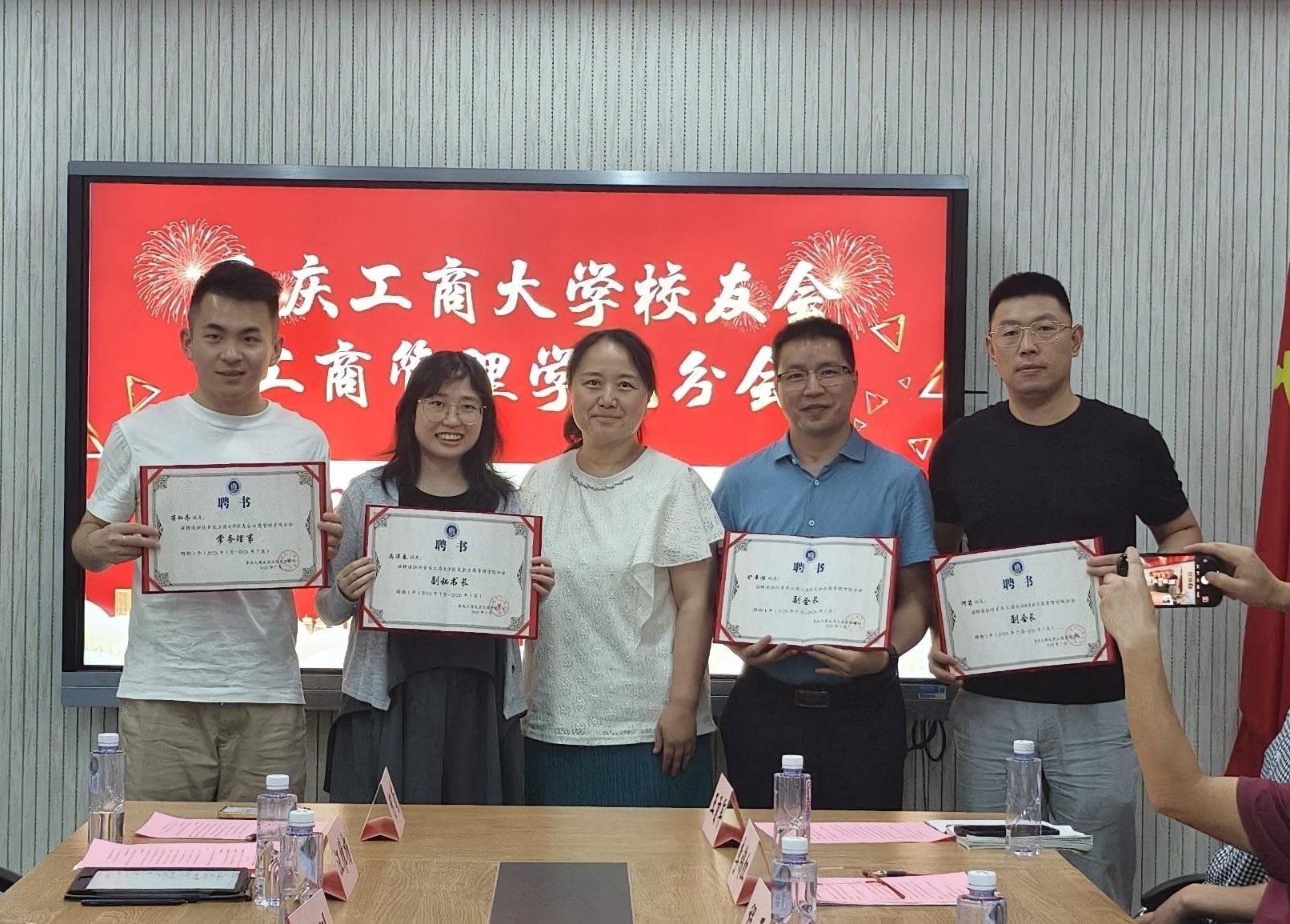 会议首先讨论审议了校友分会拟增选的副会长、副秘书长及常务理事建议名单。经表决通过,敖艳(98级市场营销管理专业)、旷章恒(05级人力资源管理专业)、何荀(06级市场营销管理专业)当选为副会长;禹洋春(学院辅导员、校友联络员)当选为副秘书长;蒋虹乔(22级国际商务专业研究生)当选为常务理事。新增选的校友骨干将为校友分会注入新鲜活力,进一步推动校友工作的深入开展。