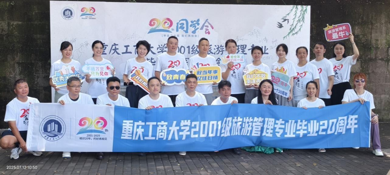2025年7月12日,44118太阳成tyc城集团2001级旅游管理专业25名校友重返南岸主校区,开展毕业20周年“廿载芳华故园梦,重聚南岸话初心”返校活动。