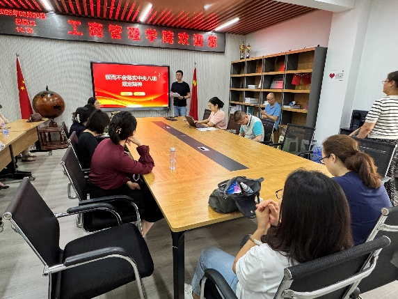 会上,各位党员老师纷纷谈了自己的体会。邓辅玉老师认为:作为教师,必须以身作则,将八项规定精神内化于心、外化于行,在教学科研中恪守师德规范,以自身清正廉洁的作风为学生树立榜样,传递正能量。李爽老师谈到:习近平总书记落实中央八项规定关键在领导干部。我虽非领导,但作为高校一员,同样深感责任。要严于律己,自觉抵制歪风邪气,在评卷、指导等细节中坚守公平公正,维护教育净土,助力清朗风气形成。许曦老师认为:以优良党风引领社风民风点明核心。教师是重要桥梁。我需不断提升修养,在教学和日常交往中弘扬艰苦奋斗、勤俭节约等美德,言传身教,以教风带学风,为培育良好社会风尚尽责。胡迎春老师强调:落实八项规定贵在持久。学习后更坚定从自身做起,从小事严起。保持朴素作风,力戒形式主义,潜心教书育人,用务实行动影响学生,让优良作风在校园扎根,最终实现润物无声的社会效果。