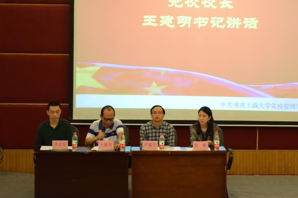 10月22日上午8:00,管理学院分党校第二期入党积极分子培训班开班典礼在我校博智楼7200学术报告厅准时召开。管理学院党总支王建明书记,党总支尹建平副书记,学团办主任卓志宏老师,学生第一支部书记王瑛老师,学生第二支部书记何祖润老师以及学生三支部书记张檬老师出席此次开班典礼。