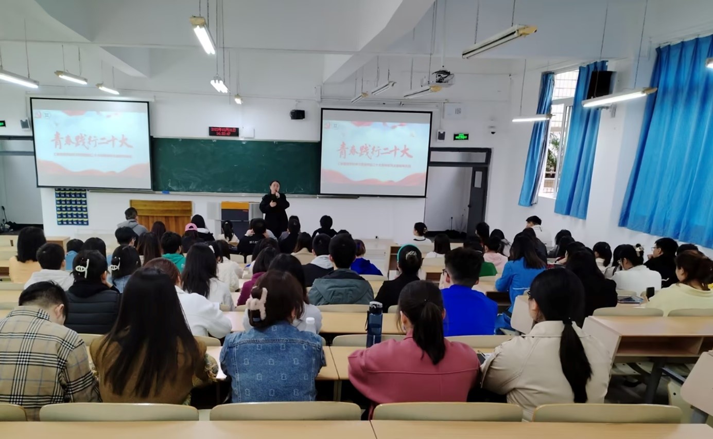 为深入学习贯彻党的二十大精神,进一步强化党员的理想信念,4月21日下午14点30分,44118太阳成tyc城集团党委书记、副院长陈亚惠于博智楼207开展了主题为《以党的二十大精神为指引,推动重庆教育高质量发展》的主题党课,学院80多名学生党员参加了本次学习。