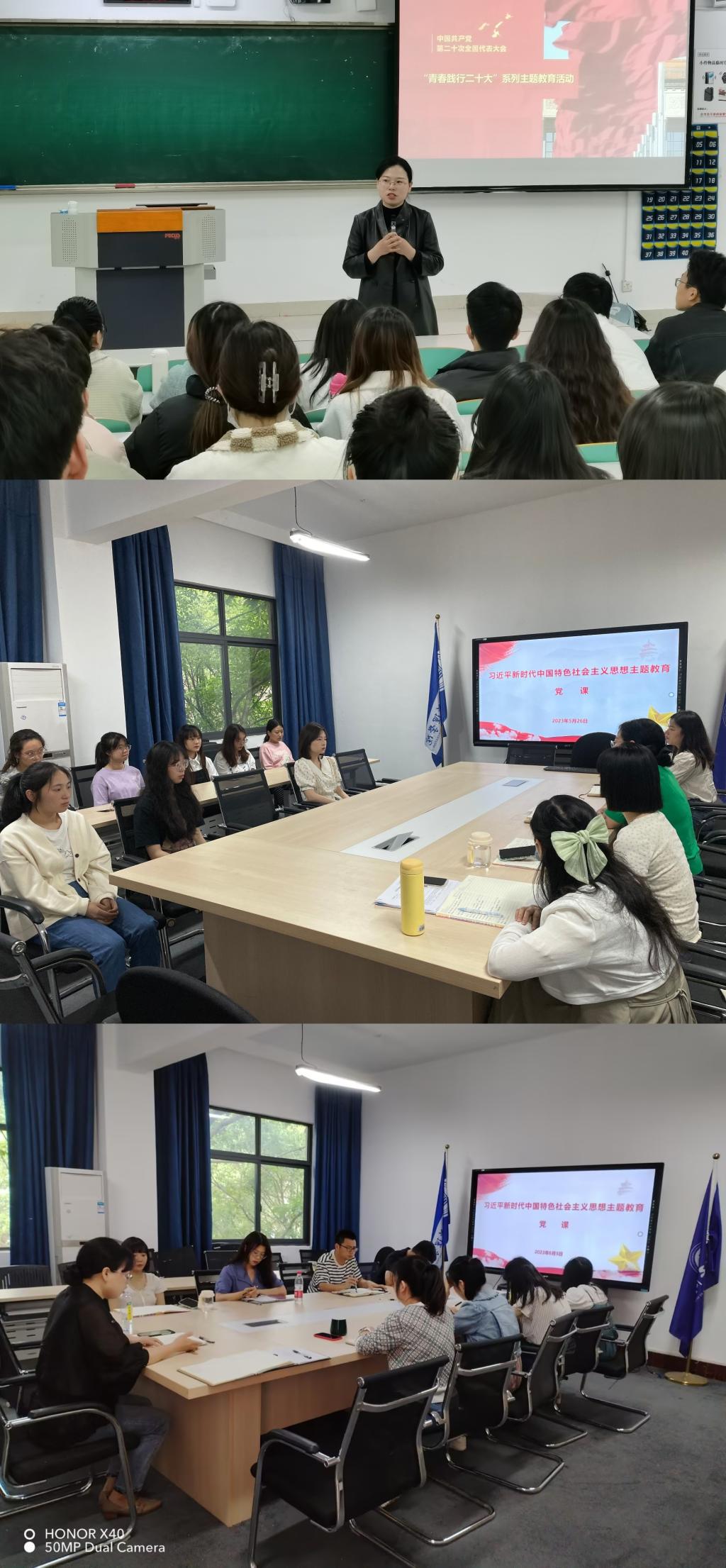 党课中,程亚同志围绕党的二十大报告、2023年政府工作报告、中共重庆市委六届二次全会精神、重庆工商大学第四次党代会报告要点的深入学习,立足学校中心工作和学院发展实际,鼓励青年师生在新时代中,找准自己的人生定位,与新时代同向同行。她强调我国开启了全面建设社会主义现代化国家新征程,党和国家事业发展对科学知识和优秀人才的需要,比以往任何时候都更为迫切。青年学生要刻苦学习科学文化知识,坚定理想信念,锻炼强健体魄,以优异成绩和实际行动为党和人民争取更大光荣。辅导员作为思想政治教育事业的排头兵,要进一步锤炼干事业的本领,坚决落实立德树人根本任务。她激励青年师生们,作为当代中国青年,生逢盛世,肩负重任,要在中国共产党的旗帜下,把青春奋斗融入党和人民事业,成为实现中华民族伟大复兴的先锋力量,让青春在中华民族伟大复兴的新征程中闪光。