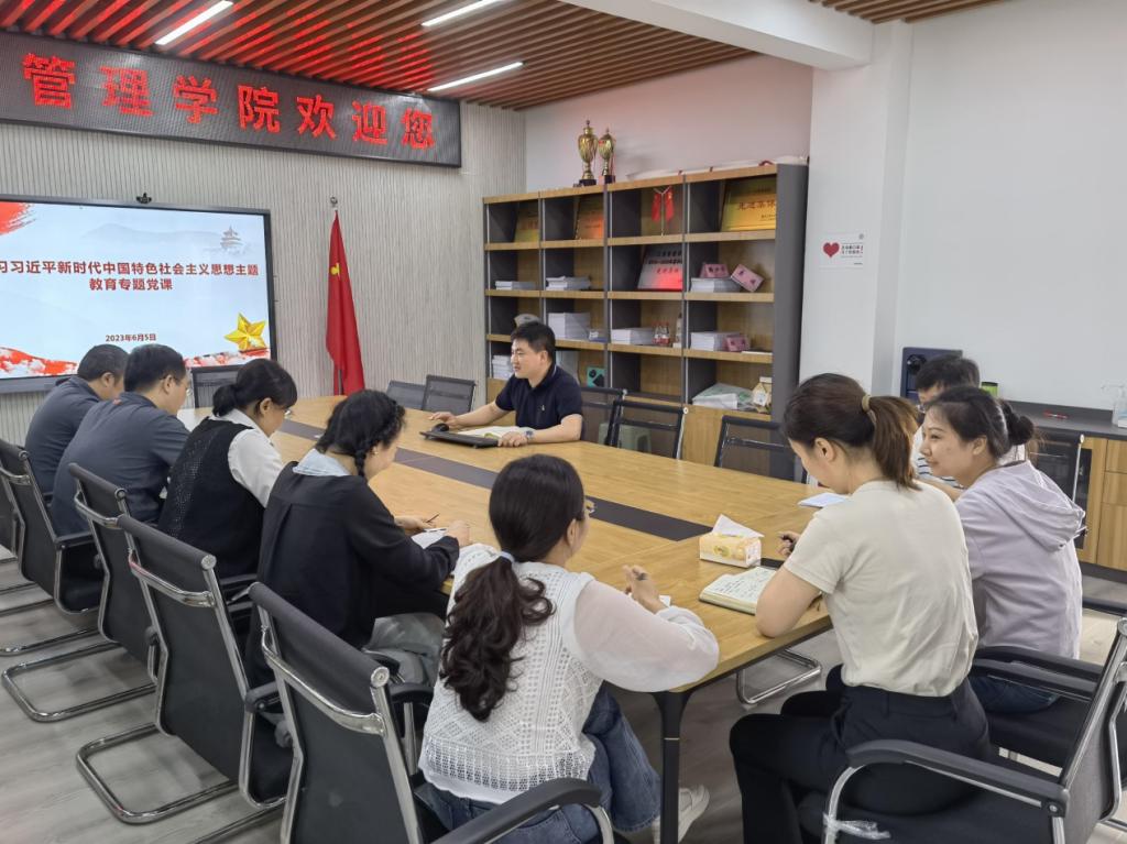 为扎实推进开展学习贯彻习近平新时代中国特色社会主义思想主题教育,6月5日,44118太阳成tyc城集团副院长陈伟同志以“担当奋进守初心、培根铸魂育新人”为题,为学院研究生培养办公室、科研与学科建设办公室、MBA教育中心全体成员及研究生辅导员讲授了主题教育专题党课。