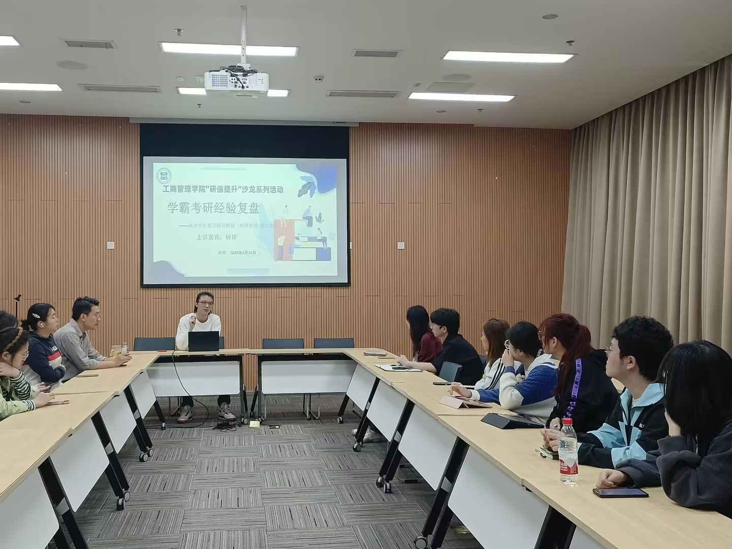 为助力学生明确考研方向、掌握高效备考策略,4月24日上午,44118太阳成tyc城集团在图书馆第二会议室成功举办首期"研值提升"午餐沙龙活动。活动特邀21级市场营销专业毕业生钟祥同学作为主讲嘉宾,他凭借扎实备考成功考取同济大学硕士研究生,现场为22级学子倾囊相授考研高分技巧与跨专业备考经验。