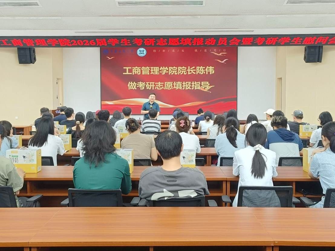 活动第一阶段,学院党委书记陈亚惠教授发言,她强调了考研复习过程中心态调整的重要性,鼓励同学们在备考冲刺阶段,保持积极乐观的心态,合理安排作息时间,做到劳逸结合,面对备考过程中的压力和困难,要学会自我调节,以坚定的信念和顽强的毅力克服困难和挑战,同时叮嘱同学们在志愿填报时要谨慎细致,认真核对各项信息,确保志愿填报准确无误,并强调学院会为考研同学提供全方位的支持,做大家最坚实的后盾。然后,学院院长陈伟教授进行考研志愿填报专题指导。他结合当下社会发展趋势,深入分析了考研对于同学们未来职业发展的重要性,指出研究生学历能为同学们提供更广阔的职业选择和发展空间,并且从专业选择、报考建议、报考流程、学习方法等多个方面开展志愿填报指导,鼓励同学们要综合考虑自身的兴趣爱好、院校专业优势、未来职业规划以及各院校的招生政策、保研百分比等因素,合理的填报报考院校。最后向同学们介绍了学院研究生硕士点与博士点的优势与特色,并且诚挚欢迎同学们积极报考本院相关专业,在熟悉的学术环境中继续深造,开启学术研究的新篇章。