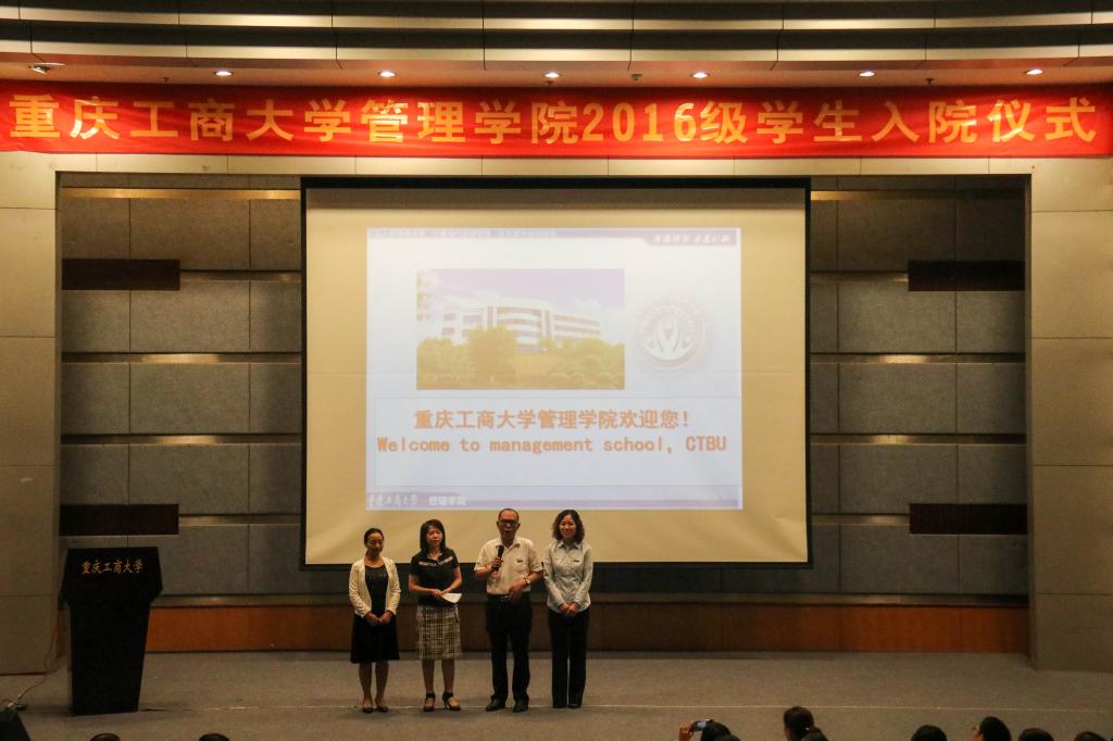 为了向管理学院2016级学生示欢迎之意,传期待之情,9月22日14:30,管理学院2016级学生入院仪式在南岸校区博智楼7100学术报告厅准时举行。管理学院分党委书记王建明、(主持工作)副院长黄钟仪、副院长周莉、分党委副书记王静以及管理学院全体教职工出席了此次入院仪式。