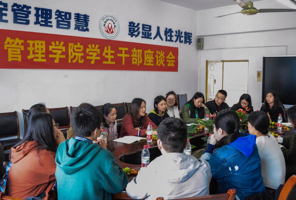 为了加强学生干部的带头模范作用和加强学风建设,3月19日17:30,管理学院在明德楼3021召开学生干部座谈会。管理学院分党委副书记、纪委书记王静、分团委书记何祖润及聂树平、王瑛等辅导员出席此次座谈会。参与此次座谈会的还有管理学院分团委学生会主席团、义协会长团、党员服务站站长、楼管会楼长等学生干部。