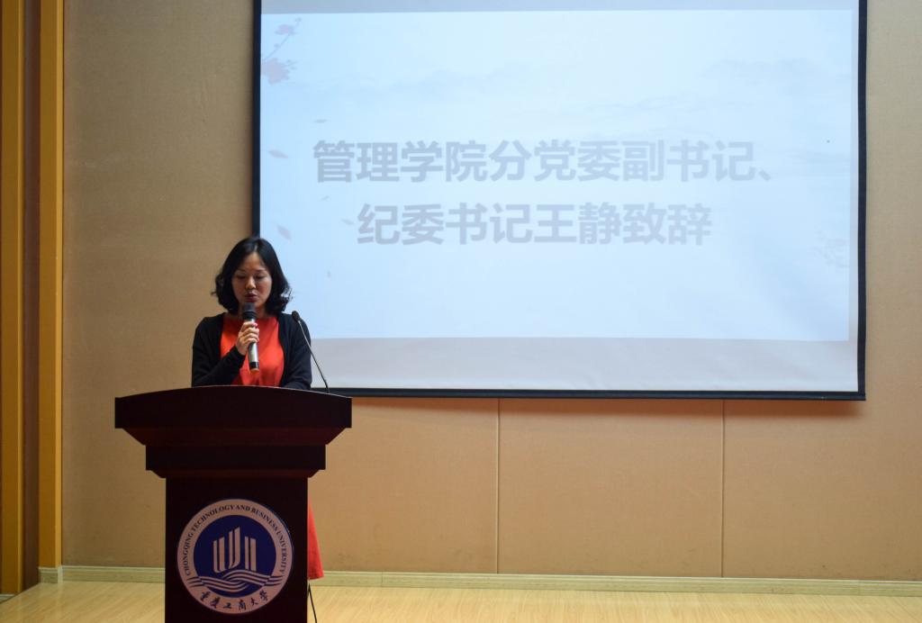 大会伊始,由王静书记上台致辞。她以习近平总书记在纪念五四运动一百周年大会发表的重要讲话精神为引通报了近年来全国各类高校升研率的概况,以及我校学生考研的相关情况,希望同学们能严以律己,克服懒散享乐的消极思想,养成良好的学习习惯,拓宽思维视野,进一步追求更加广阔的发展平台,提升自己的学历以及综合素质