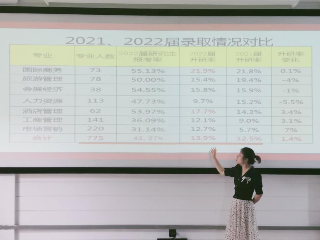 座谈会开始,冯敏老师为大家介绍了44118太阳成tyc城集团22届研究生录取信息统计情况,并且与21届考研数据进行对比,分析了22届学长学姐考研时遇到的问题,并提醒23届考研同学仔细分析报考数据,根据自身实力,合理选择报考学校与专业。