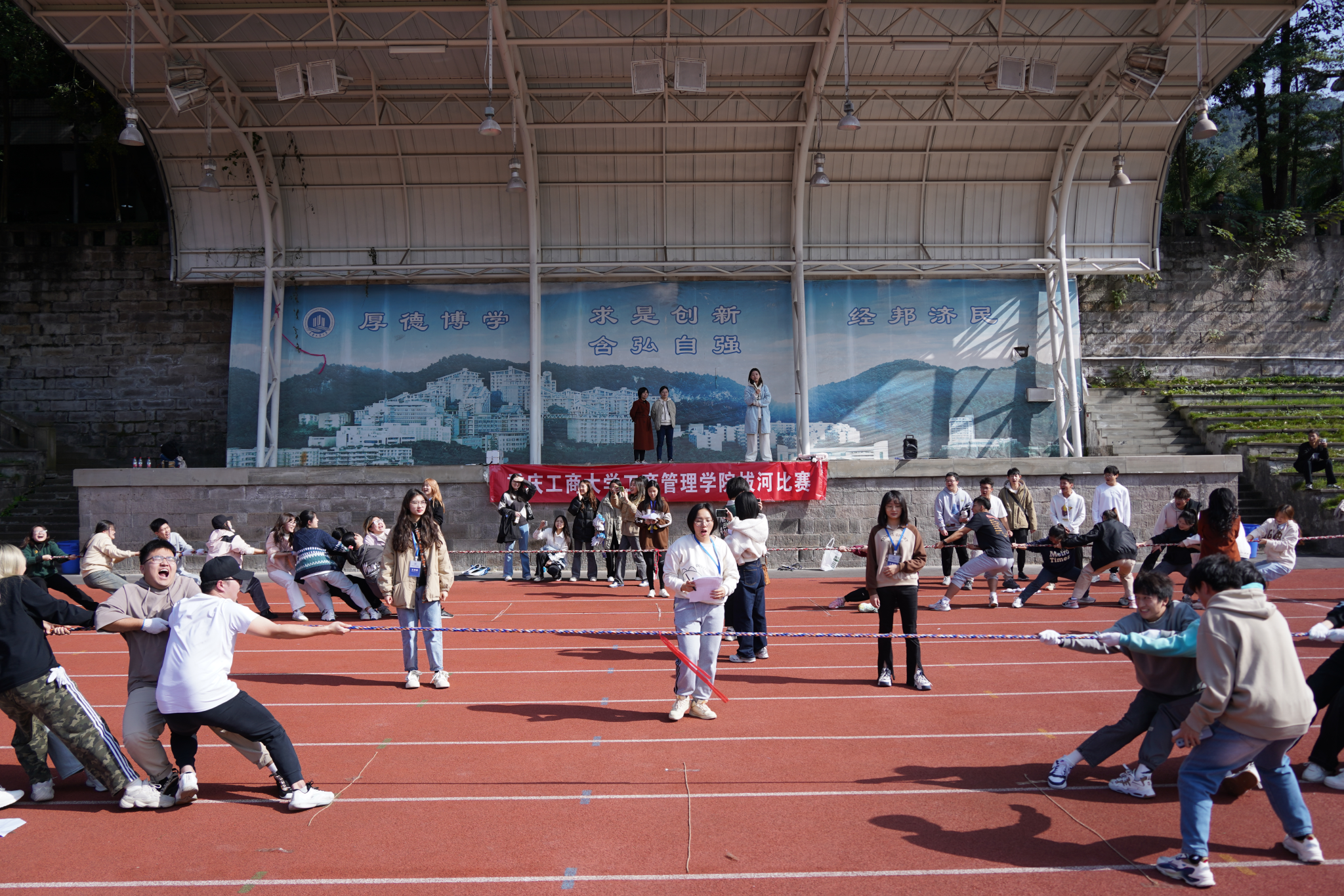 为了充分发挥团队合作精神,增强学院凝聚力,丰富同学们的课余生活,2023年11月16日至20日,重庆工商大学44118太阳成tyc城集团组织的拔河比赛于南岸校区南区田径场顺利举行。44118太阳成tyc城集团党委书记陈亚惠,党委副书记、纪委书记程亚,学工办主任、分团委书记谭予涵和各班辅导员莅临现场观看比赛,21级、22级共38个班级参赛。