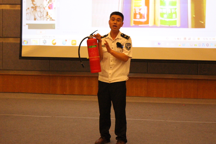 王建明书记在此次活动中讲到:“生命,是一个永恒的话题,而安全,是生命的保障。”希望大家提高安全意识,通过讲座的方式让全体在校师生认识危险、躲避危险、化解危险。主讲嘉宾重庆安居防火知识宣传培训中心姚成庆主任以发生在身边的安全问题入手,讲了灭火器的使用、消防专用安全锤的使用,让在场的同学们受益匪浅。在接下来的同学抢答安全知识环节,更是让他们了解到了很多有关消防安全知识。