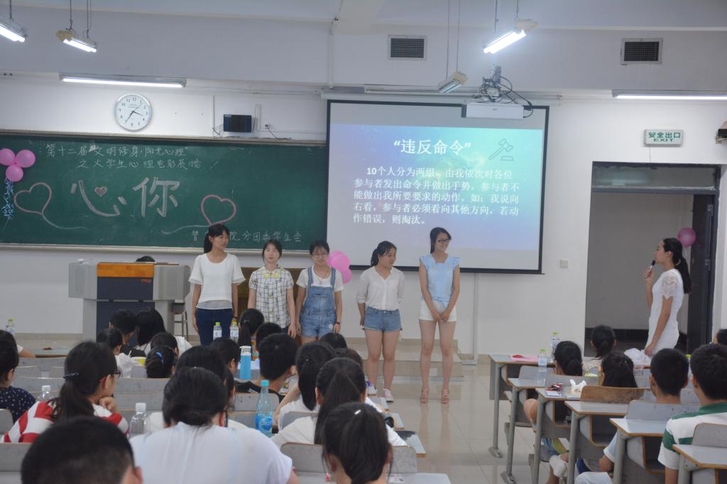 5月6日下午15:00,管理学院第十二届“文明修身,阳光心理”暨“心你”大学生心理电影展播活动在07322隆重举行。管理学院分团委书记何祖润、管理学院分团委学生会主席团出席了本次活动。