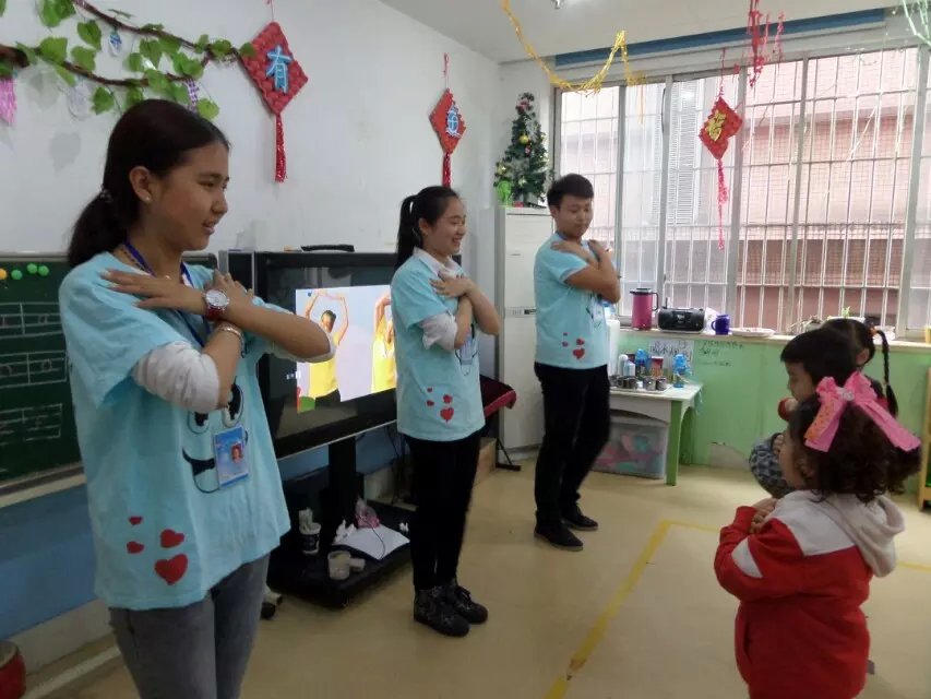 志愿者们热心地教孩子们跳舞、画画、折纸,孩子们也因为志愿者哥哥姐姐们的加入更加认真、积极地学习,整间屋子里充满着孩子们爽朗的笑声,现场充溢着欢乐的氛围。孩子们在很短的时间里就学会了以前从未接触过的舞蹈和折纸,他们通过拥抱来表达对志愿者的欢迎与感恩,他们用自己特有的方式向志愿者分享着自己的世界……。